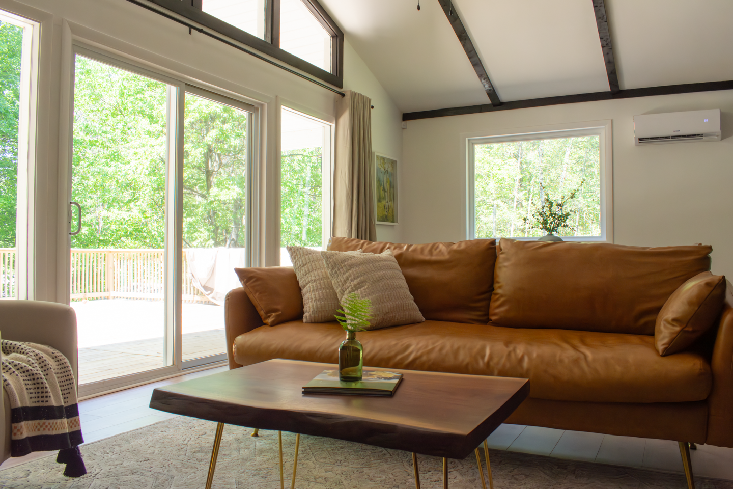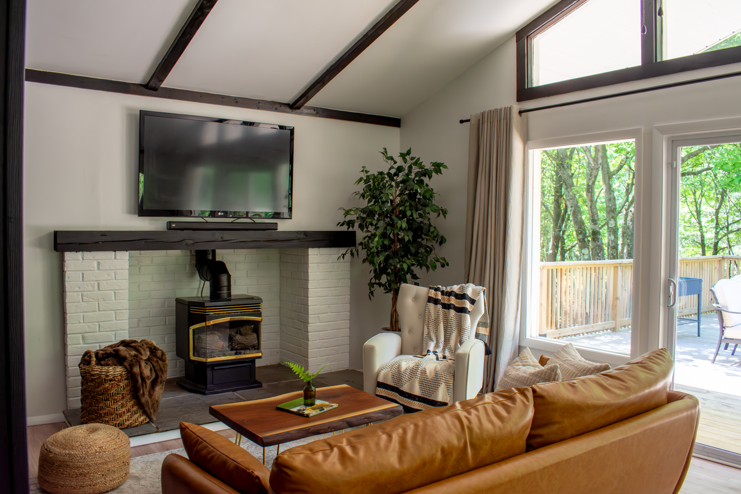 Our charming 3-bed and 1-bath cabin fetures a King bed, Queen bed, and a sleeper sofa.