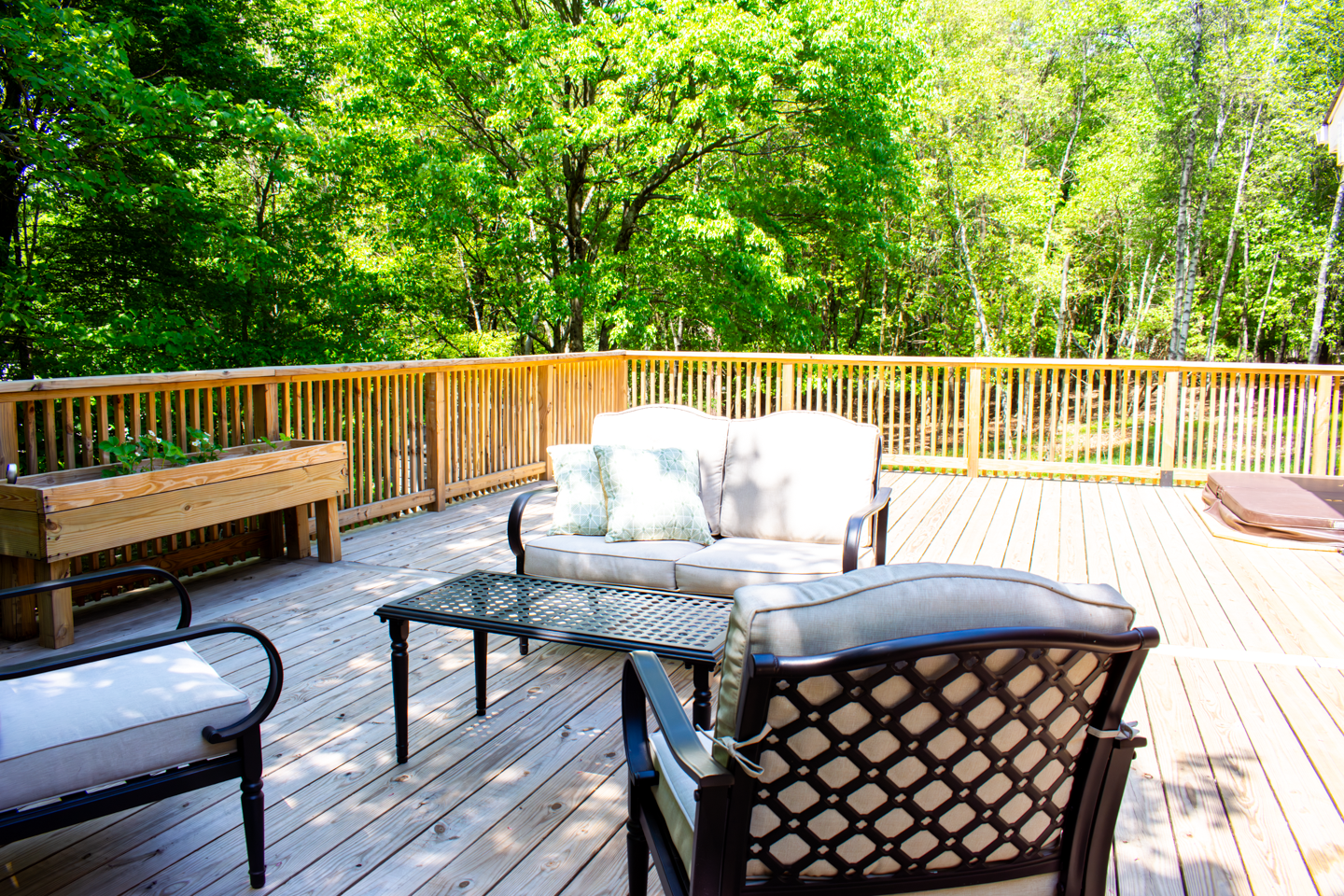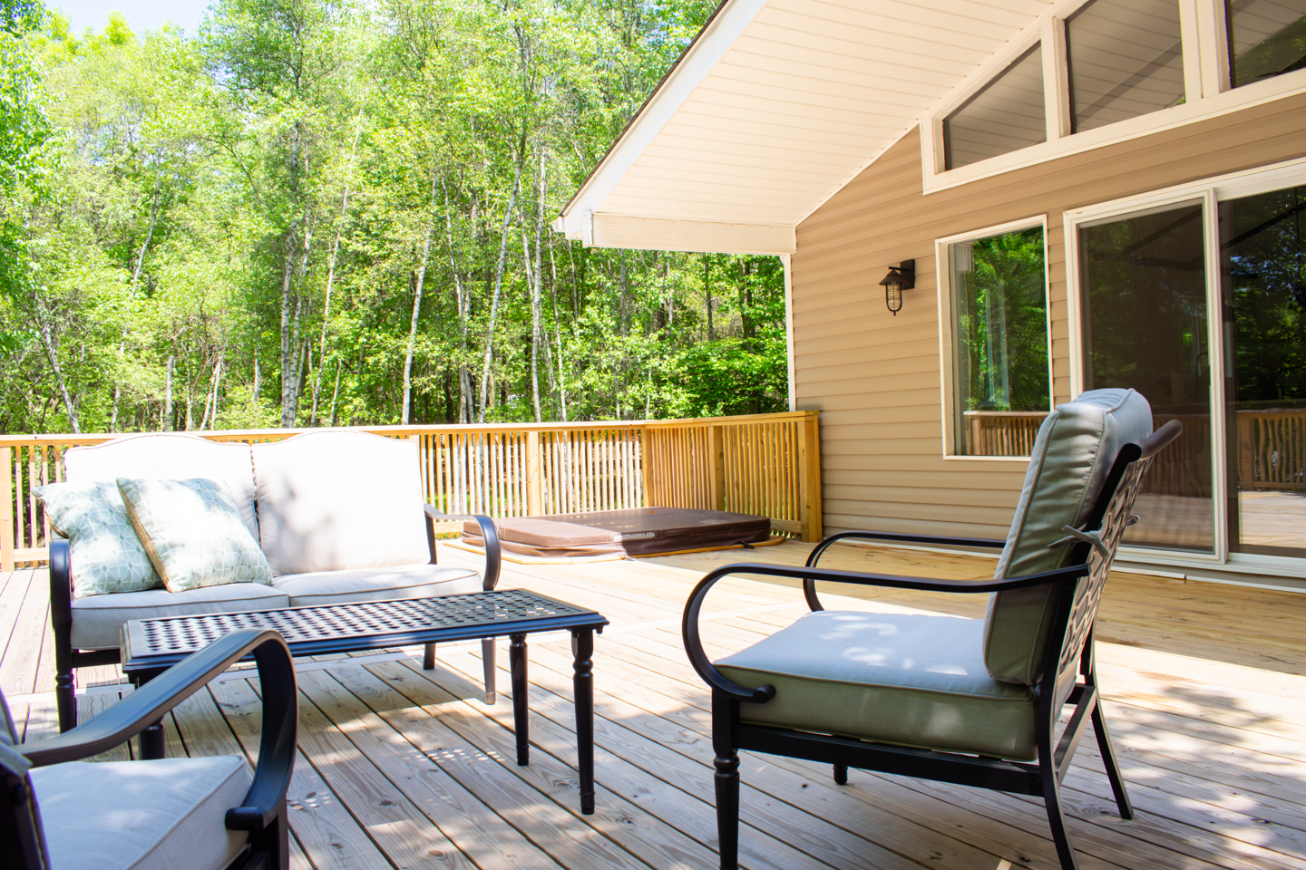 Our on deck hot tub offers privacy and convenience to relax and unwind while soaking up after a day of adventures in the Poconos.
